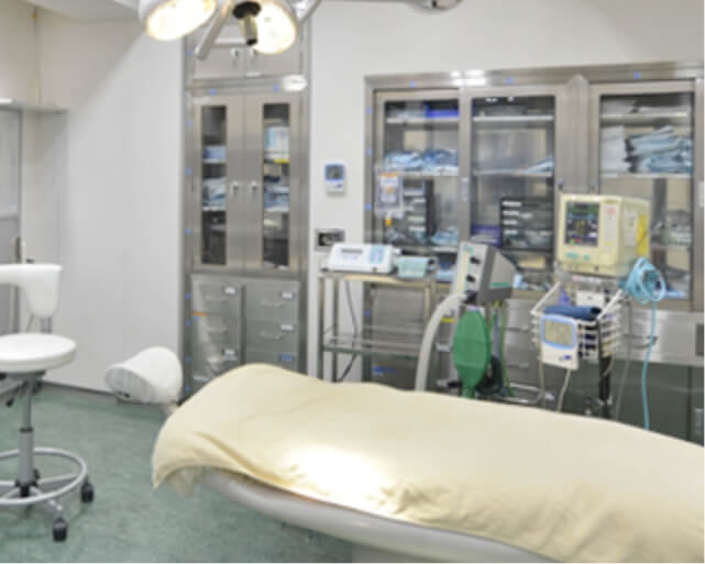 - 手術室を完備しております。空調や機械・器具すべてにおいてインプラント手術を行うために管理されたクリーンルームです。全身の状態もモニタリングしながら手術を行います。手術中、患者様がリラックスできるよう、お好きな音楽を流します。