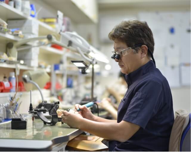 最初に来院してから、歯が入るまで。すべての分野の専門部門がクリニックに収まっています。これによって、最短1日〜2日で歯が入る驚異のスピード治療を実現できただけでなく、患者さま一人ひとりに合わせた細かな調整まで行うことができるのです。専門性の高い治療分野でも、当クリニックのみで完結することができます。